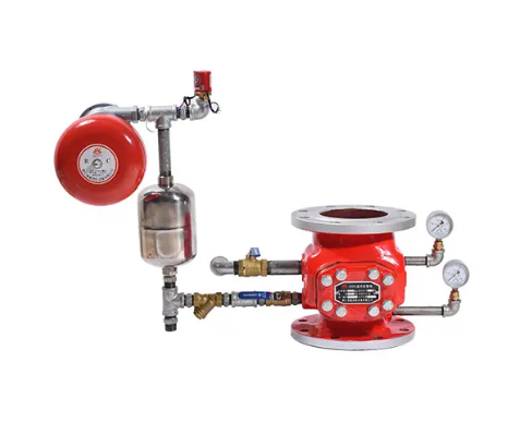 濕式報警閥是一種單向閥,只允許水流入濕式系統并在規定壓力流量下驅動配套部件報警。它通常配合延遲器使用,以防止因供水壓力波動、報警閥滲漏而發生誤報警。水流指示器和壓力開關等配件可以與之組合,形成濕式自動噴水滅火系統。